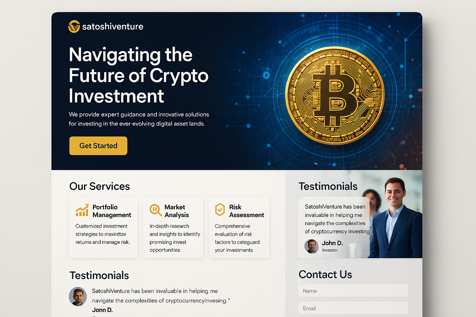 satoshiventure.com is the perfect digital asset for a forward-thinking crypto investment company looking to establish authority and trust in the rapidly growing cryptocurrency marketplace. Named after Satoshi Nakamoto, the legendary figure behind Bitcoin, this domain effortlessly encapsulates innovation and leadership — essential qualities for any business aiming to make a significant impact in the digital currency sector. This domain's memorable and meaningful name offers instant recognition and credibility, positioning your company as a thought leader in the emerging field of cryptocurrency investments.